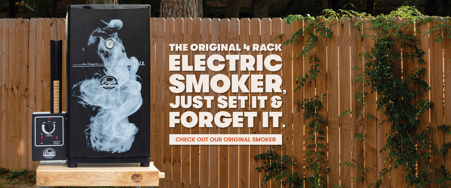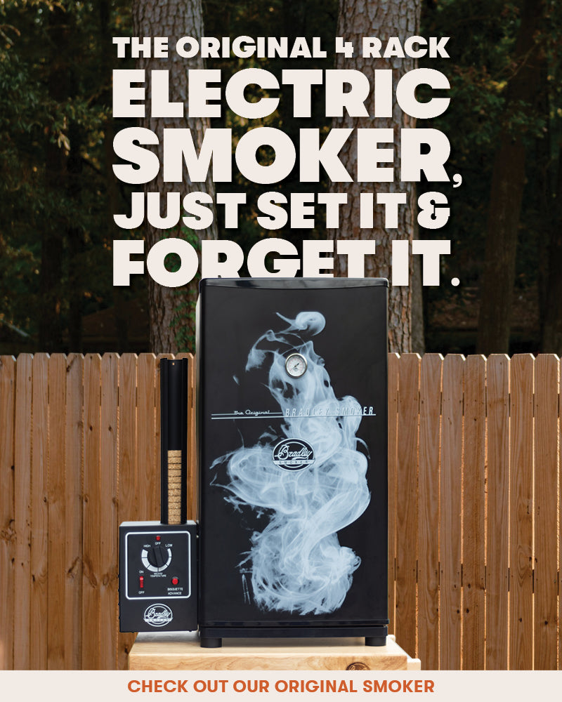 Bradley’s Hottest Smoker! With 4 Racks, 10 hours of smoke.