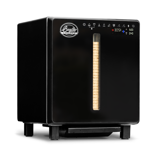 Heat the Bradley P10 using your favorite bisquettes to 190ºF.