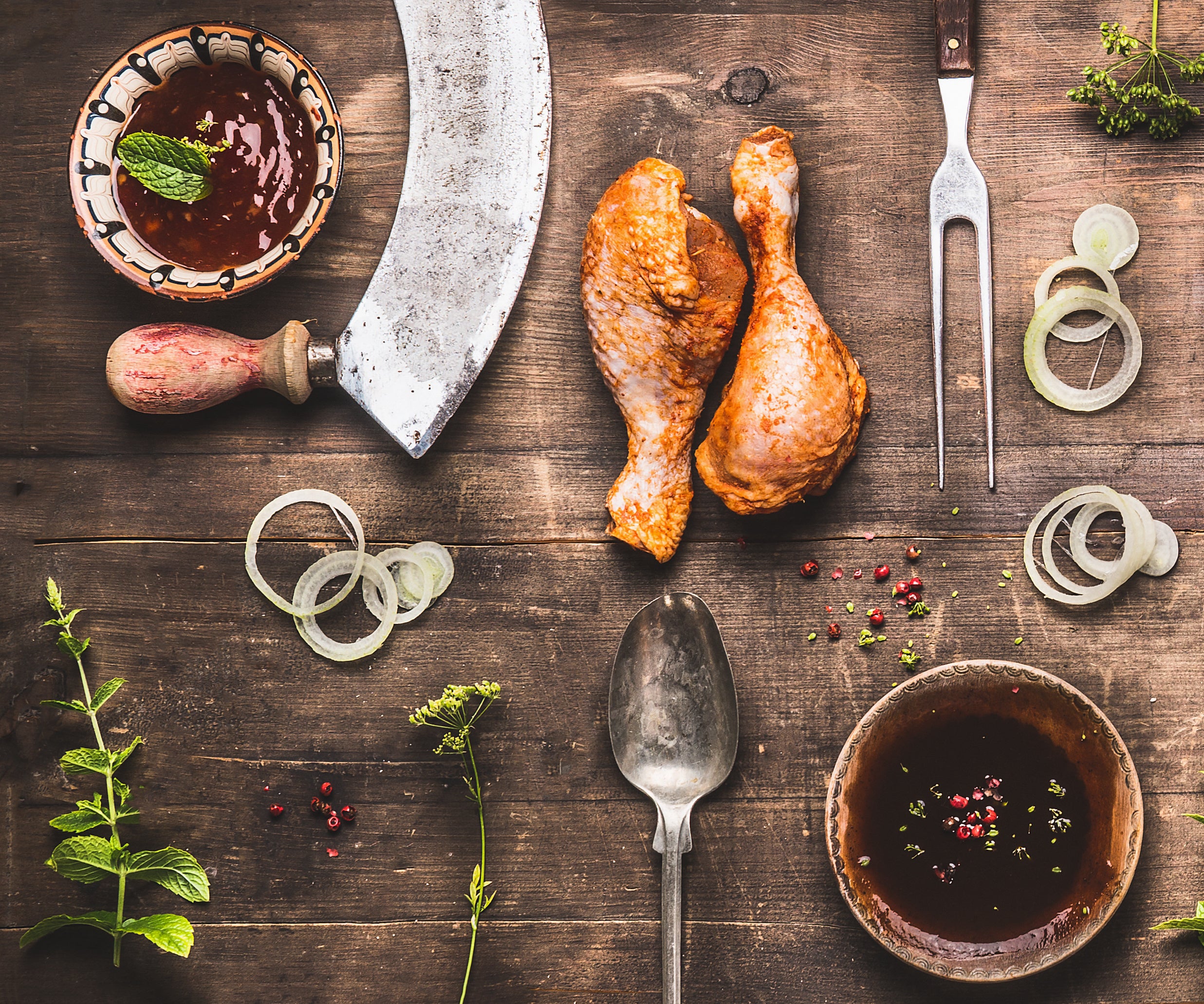 2 Diced and sliced onions
