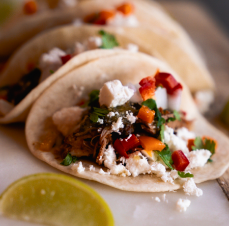 Place a couple of spoons of the shredded lamb onto your tortilla along with a spoon of salsa verde, some chopped white onion, crumbled cheese and cilantro leaves. Dab a couple of drops of your favourite hot sauce (totally optional) and enjoy the smiles on the faces of friends and family.