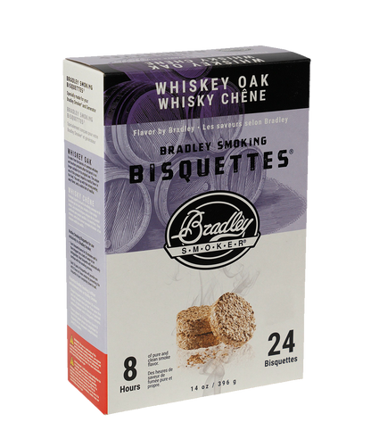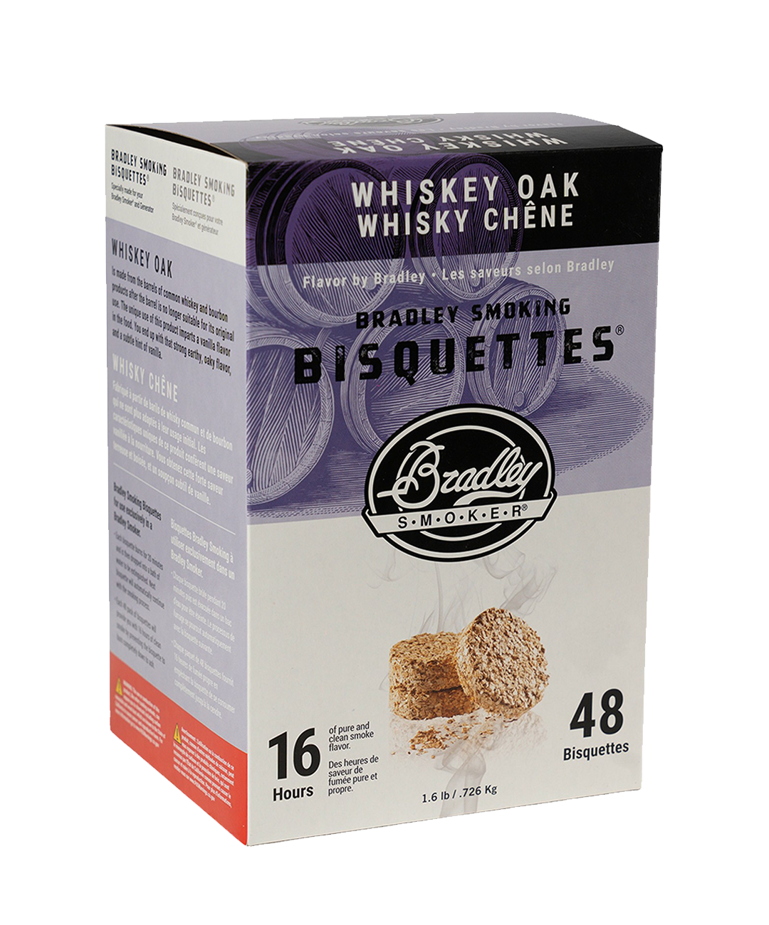 Les Bisquettes en bois de chêne pour whisky Bradley Smoker ® sont fabriquées à partir de bois pur. Vous pouvez ainsi fumer des aliments avec un goût pur et délicieux.