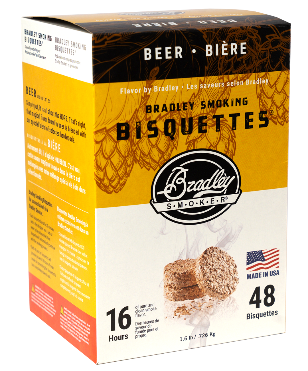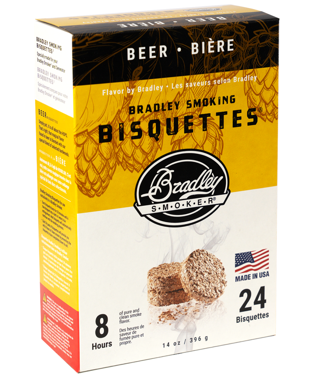 Bradley Smoker Premium Beer Wood Bisquettes ® are made from pure wood. So you can smoke food with pure delicious taste.