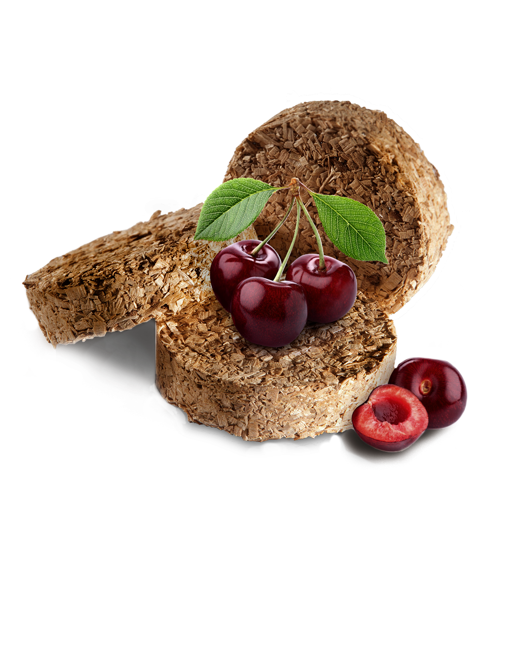 Cherry Bisquettes provide a mild, sweet, and fruity aroma perfect for smoking poultry, fish, seafood, beef, pork, lamb, water fowl, vegetables, and cheese.