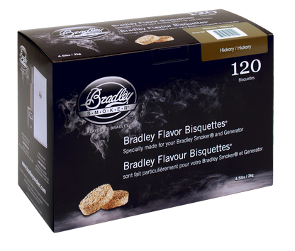 Bradley Smoker Hickory Wood Bisquettes ® are made from pure wood. So you can smoke food with pure delicious taste.