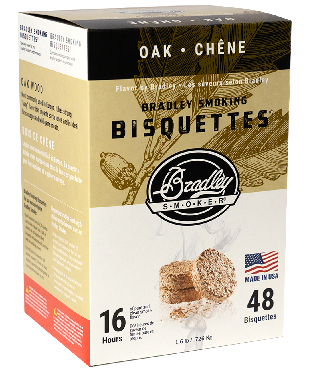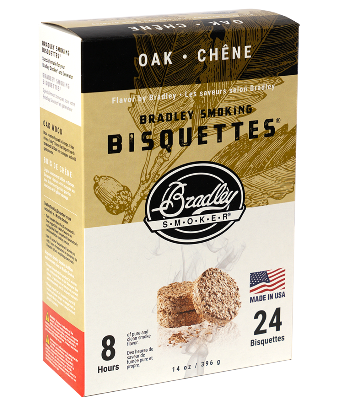 Oak Flavor Bisquettes especially pair well with poultry, beef, pork, lamb, and game.