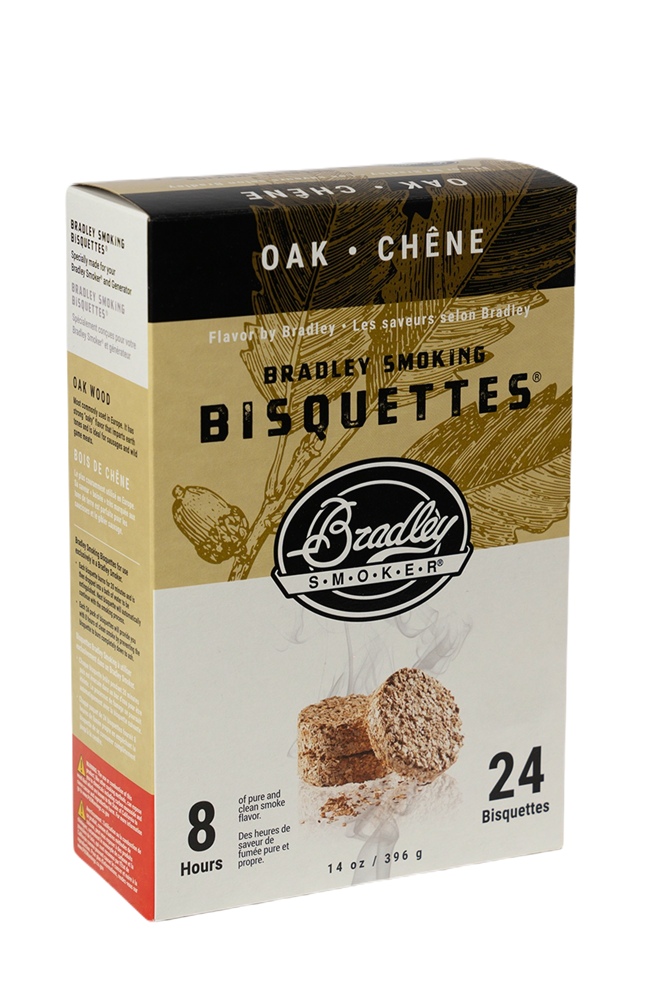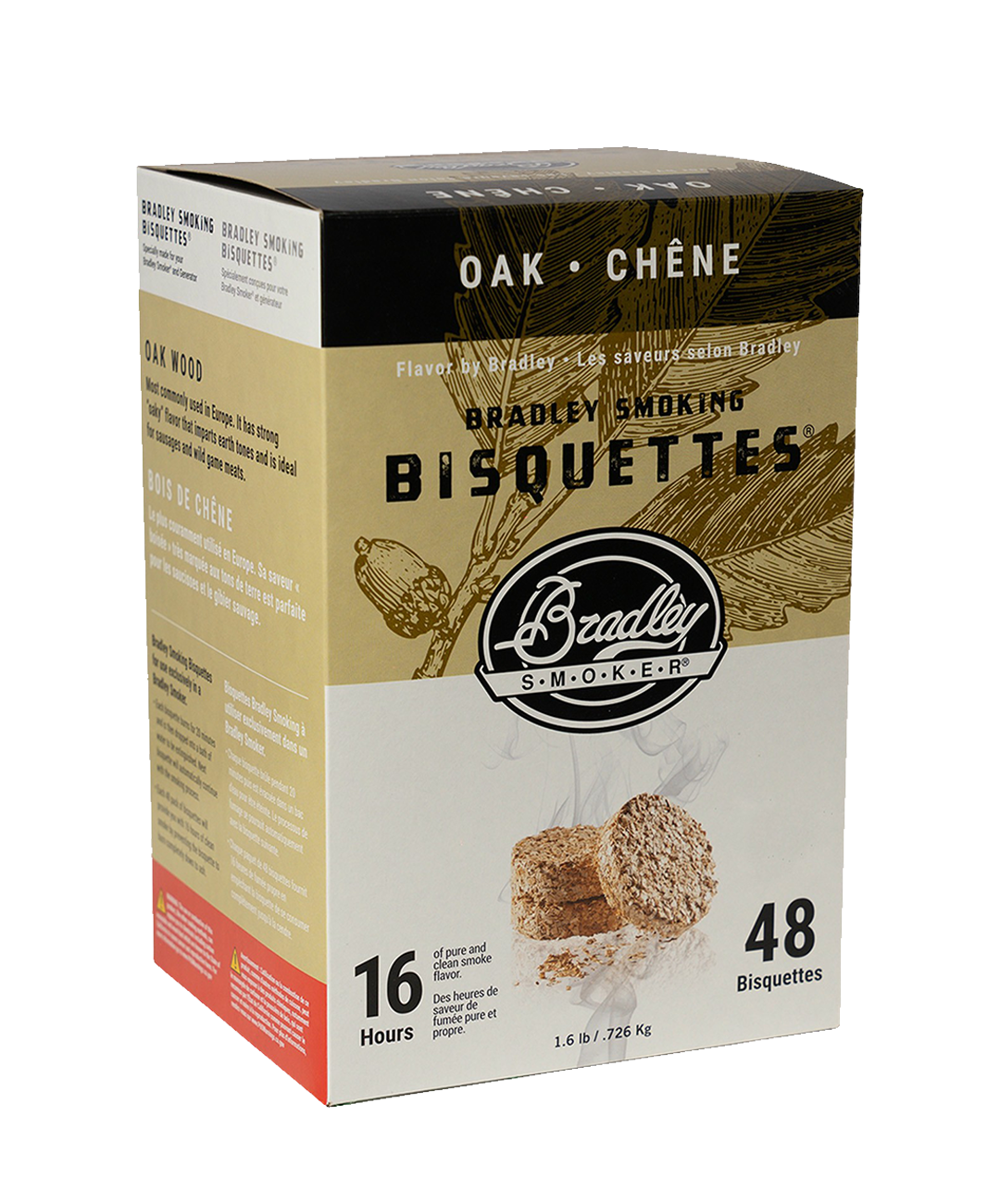 Oak Flavor Bisquettes especially pair well with poultry, beef, pork, lamb, and game.